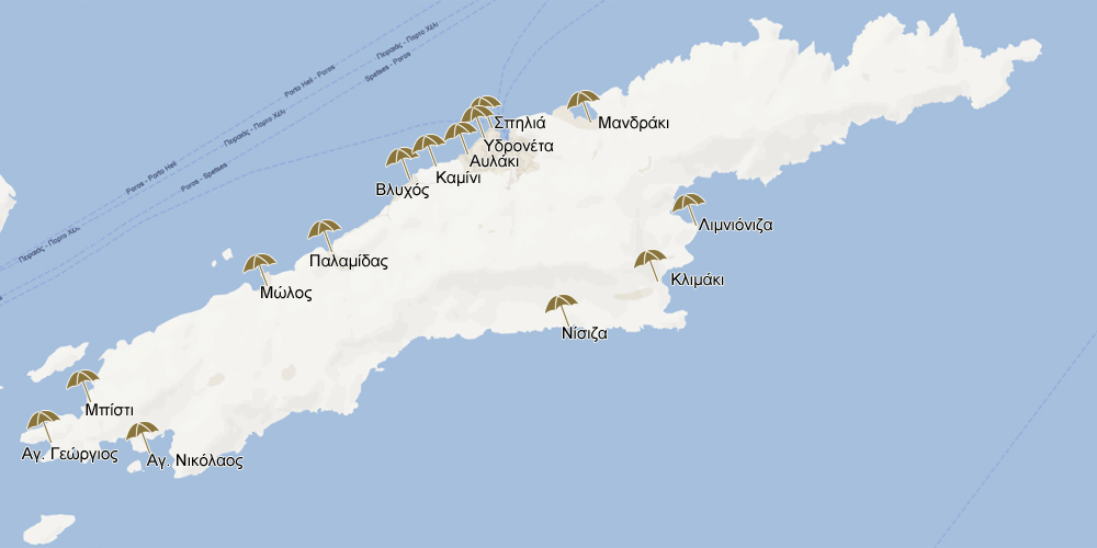 Όλες οι παραλίες της Ύδρας με άμμο και βότσαλα ή βράχια, έχουν κοινό χαρακτηριστικό τα πεντακάθαρα, καταγάλανα και κρυστάλλινα νερά.